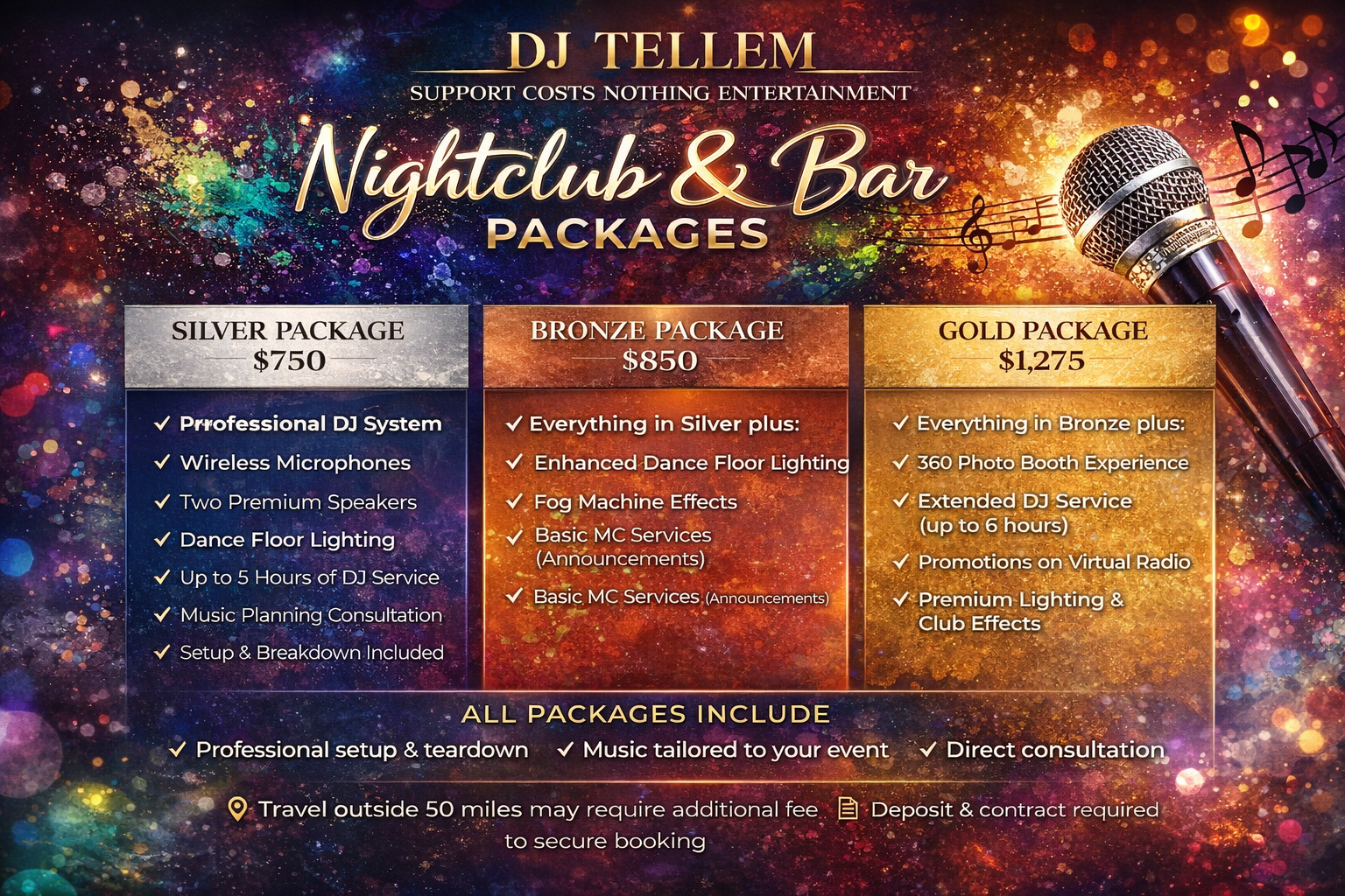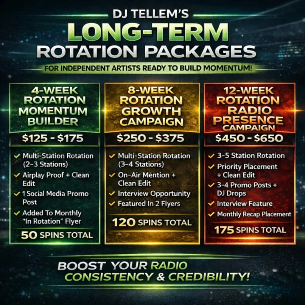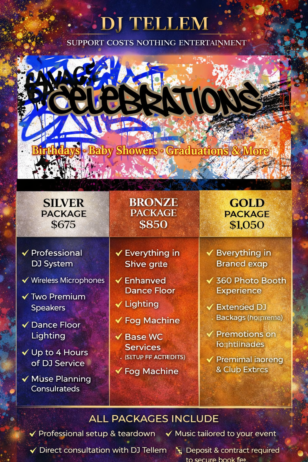 Poster advertising performance track editing services with colorful background, bold titles, and pricing details.